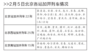 据了解,为满足春节期间旅客的乘车需求,北京铁路局已提前规划,从2月10日(大年初三)起将增开北京至济南、荣成等方向旅客列车。具体信息为:2月11日至2月15日,北京铁路局增开北京至邯郸K5215次旅客列车,2月11日至3月3日,增开北京南至济南西G4287次旅客列车,2月10日至3月2日,增开北京南至荣成G4217次旅客列车。