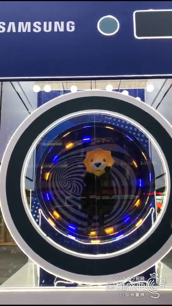 “旋转、跳跃,我眯着眼。”爬进炫酷的巨型洗衣机好好洗干净。