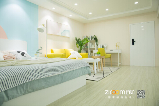 据了解,此次亮相地铁站的样板间为自如整租的3.1风格。马卡龙的粉蓝配色宁静清新,搭配明黄色的沙发和座椅点缀其中,活泼又明亮,偏素的床品、抱枕和地毯,平衡了明黄的跳脱,让整个房间更加温馨舒适。如此有趣又有品的设计,让来往青年频频驻足,关于未来美好生活的畅想也由此产生。