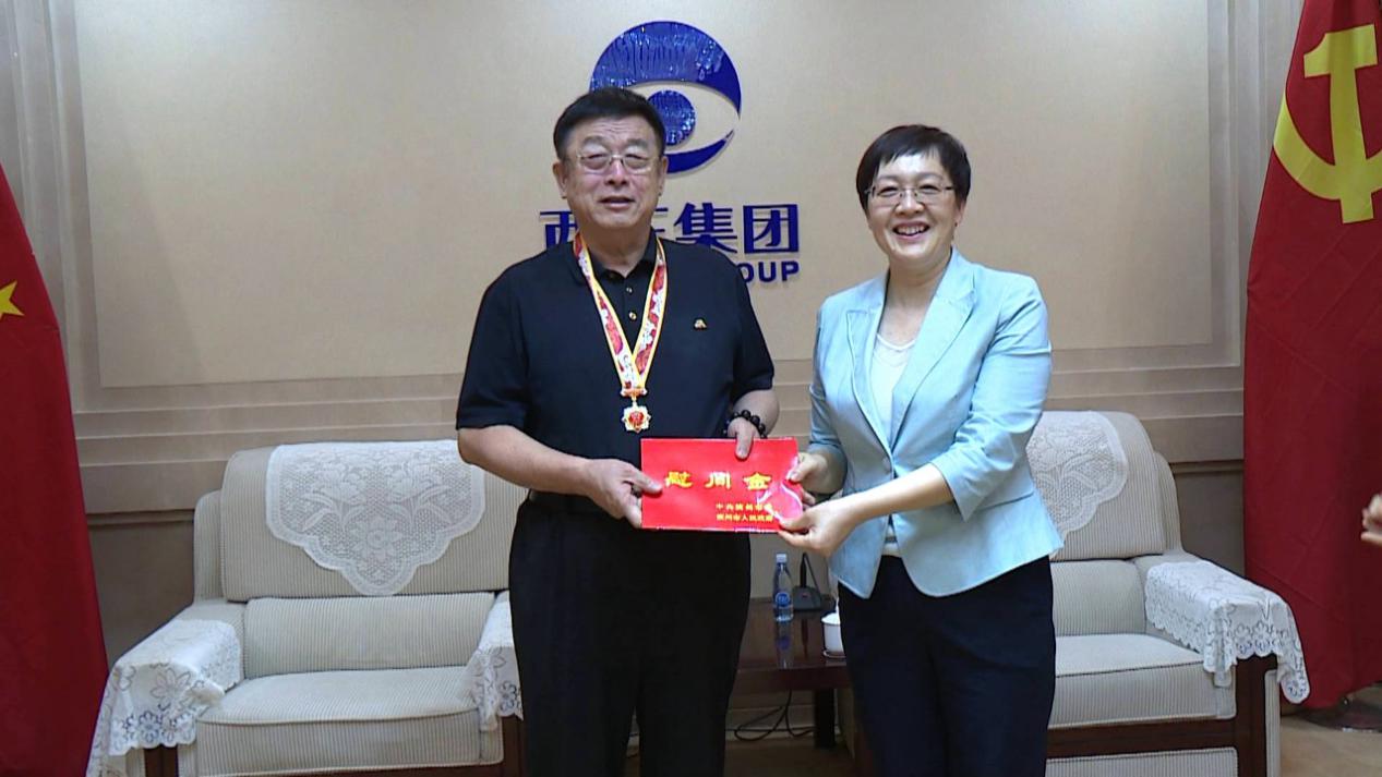 在国庆节即将来临之际,全国各地迎接建国70周年华诞的活动都在如火如荼的进行中。9月23日,滨州市委常委、宣传部部长王晓娟代表市委市政府前来看望全国劳动模范、西王村党委书记、西王集团董事长王勇,并为王勇董事长送上了庆祝中华人民共和国成立70周年纪念章和慰问金。滨州市委宣传部副部长崔洪凤,邹平市委常委、宣传部部长、统战部部长郑红丽,韩店镇党委书记付俊峰等参加了此次活动。