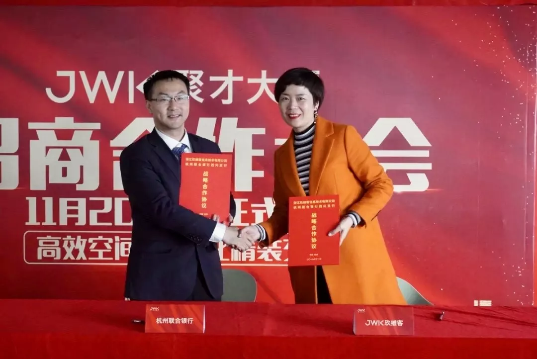 为推进企业的金融服务工作,JWK携手杭州联合银行西兴支行为JWK·聚才大厦入驻企业提供租金贷的授信支持,帮助企业解决发展过程中的融资需求,推动企业的可持续健康发展。