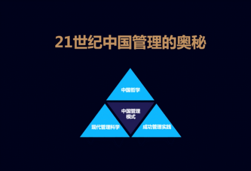金蝶自2008年开始,即已联合社会各界力量推动“中国管理模式”研究,徐少春亦现场分享了由中国哲学、现代管理科学、成功管理实践组成的“中国管理模式三角形”,并将其赋予了新的内涵。“德鲁克说21世纪中国将与世界分享管理奥秘,这奥秘是什么?奥秘就是我们每一个中国企业家,每一个职业管理者,不断地开发我们内心心灵的宝藏,奥秘就在‘心’这里。”
