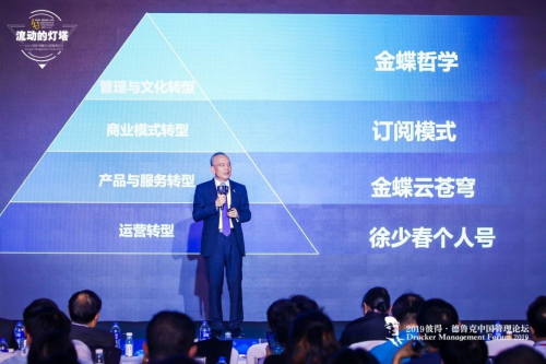 德鲁克曾说“21世纪,中国将与世界分享管理奥秘。”金蝶集团董事会主席兼CEO徐少春,在会上分享了他创业26年来的感悟以及对金蝶哲学的解读。
