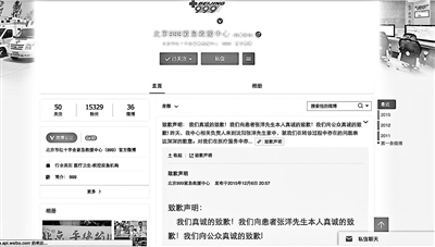 12月6日晚,北京999紧急救援中心公开发表声明,针对999急救中心在转诊过程和医疗服务中存在的问题,向患者张先生公开致歉。