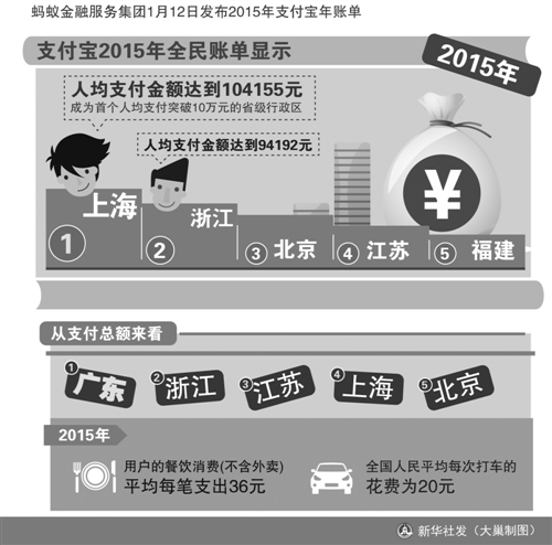 账单显示,2015年互联网经济继续保持高速增长。按省级行政区划分来看,上海人均支付金额排名全国首位,达到104155元,这标志着网上人均支付开始迈入“10万时代”,消费潜力十分巨大。
