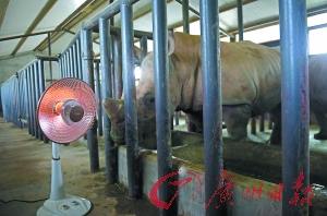 25日,黑猩猩、犀牛、大象等最怕冷的大型动物躲到了屋子里,里面还烧着木炭、开起了电暖炉,以加温取暖。屋外冷风嗖嗖地吹,可屋里温暖如春,温度保持在15℃左右。大蟒蛇更是“娇贵”,记者在蟒蛇馆看到,蟒蛇不但裹上了厚厚的棉被,而且旁边还有取暖器加温,真够暖和的。在蛇园,记者看到青蛇、蜥蜴等爬行动物虽然没有像蟒蛇般盖起棉被,但也开起了电暖炉,点起了取暖灯。