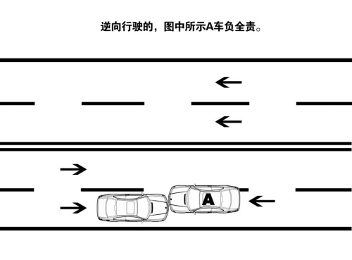 通过没有交通信号灯控制或者交通警察指挥的交叉路口时,遇相对方向来车,左转弯未让直行车先行的,图中所示A车负全责。