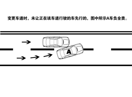 变更车道时,未让正在该车道行驶的车先行的,图中所示A车负全责。