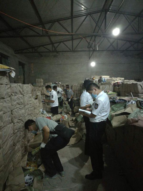 北京“8·08”特大制销侵权盗版少儿类出版物案:执法部门对非法仓储窝点中的非法出版物进行查缴登记