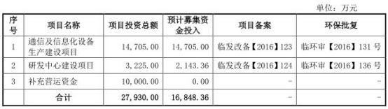 万马科技本次募集资金净额16,848.36万元用于通信及信息化设备生产建设项目、研发中心建设项目、补充营运资金。