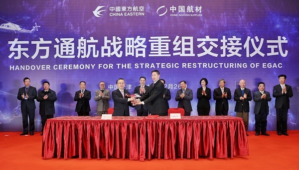 中国网财经12月26日讯 据国资委网站消息,2017年12月26日,中国东方航空集团公司(以下简称“东航集团”)与中国航空器材集团有限公司(以下简称“中国航材”)在天津举行东方通用航空有限责任公司(以下简称“东方通航”)战略重组交接仪式。在国务院国资委、国务院派驻国有重点大型企业监事会、中国民用航空局、天津市政府等有关各方的共同见证下,东航集团正式将东方通航无偿划转给中国航材,两家民航领域的中央企业共同开启东方通航的发展新征程,推动国有企业做强做优做大,推动我国通航事业长期可持续发展。