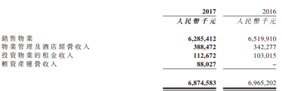 根据财报,阳光100在物业销售上收入下降较明显,达20多亿元,但在酒店经营和物业管理上则有所增进,且多了一块轻资产运营收入。