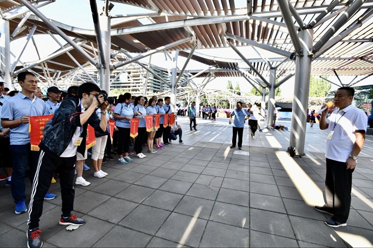 9月8日, “铜牛集团第六届职工健步行”活动在奥林匹克森林公园举办,集团工会主席李建华主持启动仪式并鸣哨宣布活动开始。
