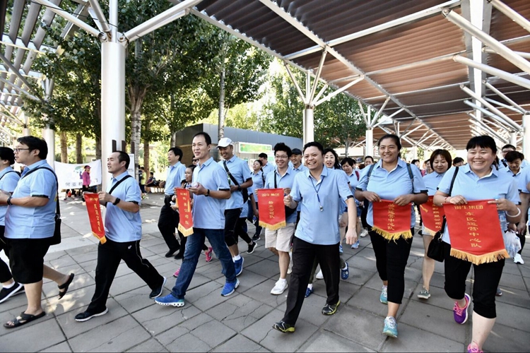 来自集团工会十一家分会的近300名职工统一着装、精神抖擞、步履轻快地行走在林荫步道中,大家一路欣赏风景、一路健步前行,充分展示着运动的美并成为这金色季节的一景。每个铜牛人的脸上都洋溢着喜悦与快乐,享受着“我运动、我快乐”带来的身心愉悦。