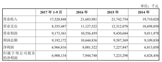 2017年12月26日报送的招股书显示,2015年、2016年重庆农商银行实现营业收入分别为217.43亿元、216.84亿元。2018年9月27日报送的招股书显示,2015年、2016年该行实现营业收入分别为217.75亿元、217.05亿元。