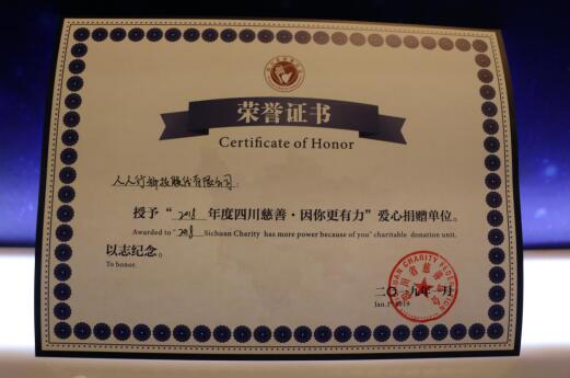 2019年1月9日,由四川省慈善总会主办的“四川慈善 因你更有力”交流活动,在蓉城温情举办。人人行科技股份有限公司(即借贷宝公司),获得“爱心捐助单位”荣誉。