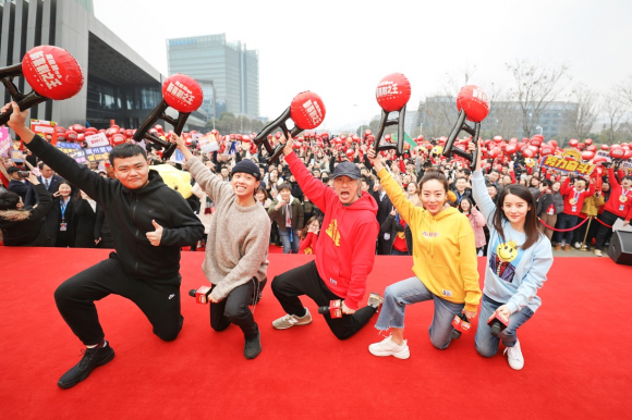1月25日,周星驰率电影《新喜剧之王》众星突袭苏宁易购总部,与苏宁员工亲密互动,成为年末最大惊喜。苏宁女快递员支桂红上台和周星驰进行了面对面互动。