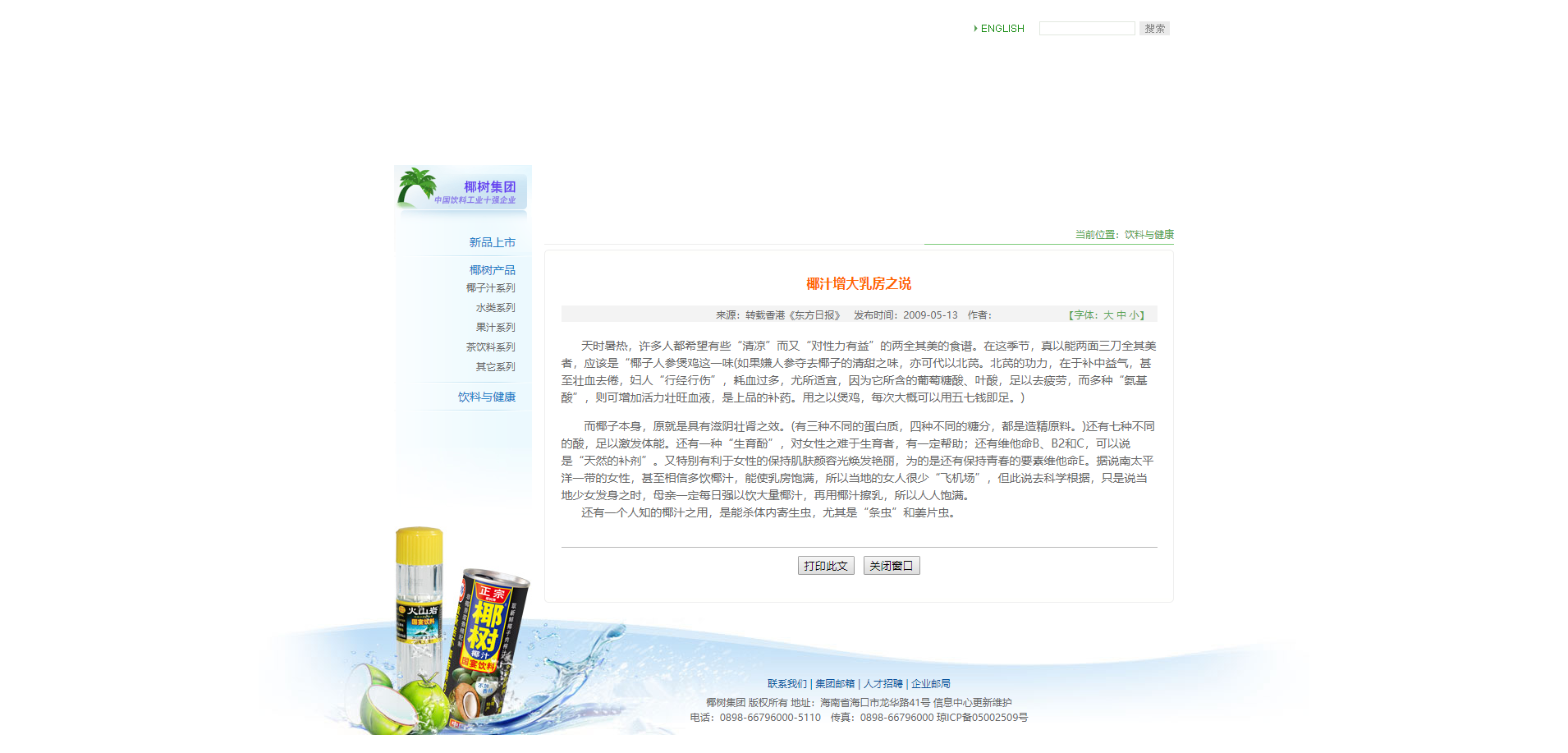 椰树集团网站发布更早的几篇文章,则明示了椰汁具有“丰胸”功效。其中,椰树集团早在2009年5月13日发布的一篇 “椰汁增大乳房之说”文章中,称“每日强以饮大量椰汁,再用椰汁擦乳,所以人人饱满”,明确提到椰汁有丰胸功效。