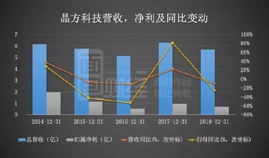针对2018年的业绩下滑,晶方科技表示主要系销售规模下降所致。数据显示2018全年公司晶圆级封装产品的产量和销量同比均下滑逾10%。而多年财务数据则显示,公司自上市以来业绩较为起伏不定。