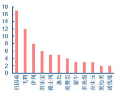 主要品牌配方获批个数(中信证券,截至2018年5月)