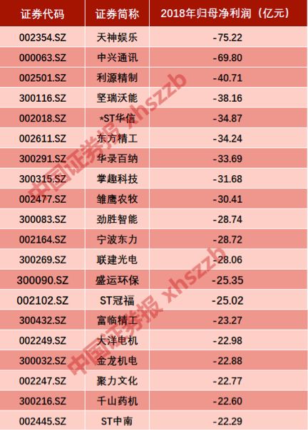 值得一提的是,目前A股亏损额最大的公司为亏损75.22亿元的天神娱乐(5.730, 0.05, 0.88%),中兴位列第二。