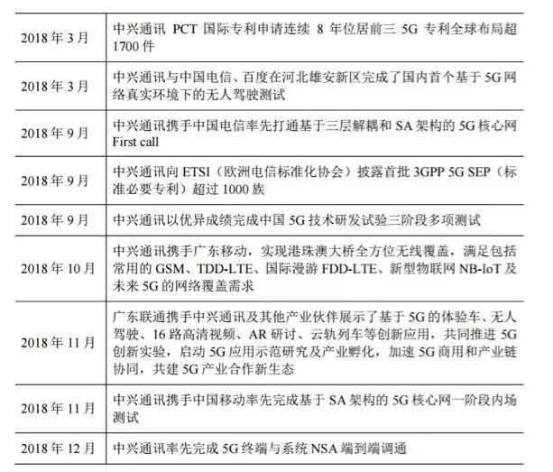 从中兴通讯公布的2018年大事记来看,公司多个重大进展都与5G相关。