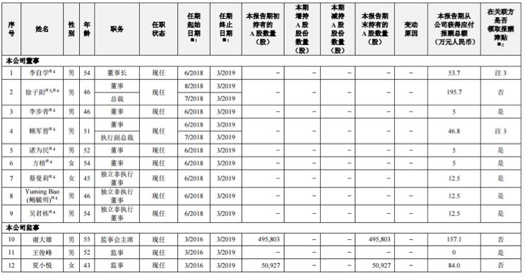 中兴通讯2018年部分高管薪酬表 来源:公司年报