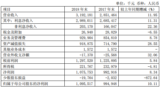 无锡银行(600908.SH)3月29日晚间发布2018年年度报告。2018年,无锡银行实现营业收入31.92亿元,同比增长11.95%;实现归属于上市公司股东的净利润10.96亿元,同比增长10.11%;实现经营活动产生的现金流量净额-39.57亿元,同比减少163.44%。