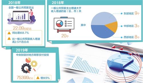 同时,在地区差异方面,东部地区要好于中西部地区。2018年一般公共预算支出增速大于收入增速的省(区、市)共20个,其中东部地区9个,中部地区3个,西部地区8个。