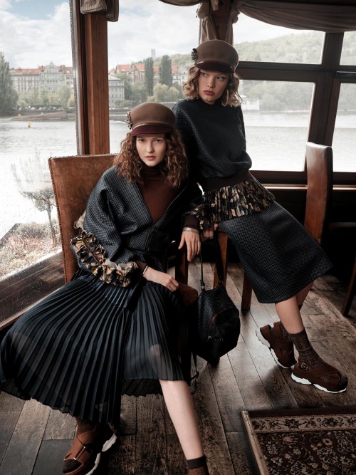 这一次旅程,没有日程和时间的安排,只是跟随心的指引,去尽情享受不受束缚的自由。两位女孩身穿D-63 2019秋季时装,展现了一个极具华丽的行走风貌。沿途经过了伏尔塔瓦河、码头、咖啡馆,还有古朴的石桥。天气时而烟雨朦胧,时而微风荡漾。旅途中,D-63找到了自由的另一面,一个面对意外变化依然自在享乐的随心姿态。自由、爱、平等是此次D-63旅程的探索核心。带着这样的自由哲学,D-63傲然踏出每一步,人与人之间的爱与交流呈现出最本真的模样。烟雨中的着装,与布拉格古典的背景融为一体,释放出一种低调奢华的复古之美。飘逸的裙摆配以浓郁的色块,精致的印花以西装的形式华丽呈现,繁复的金色褶皱缀于袖与腰间,则在视觉上展现出高级轻奢的时尚美学。D-63随心所欲,肆意游走的自由精神,以充满创意的混搭、复古色彩的碰撞和跳出常规的廓型,在旅途中跃然而出。