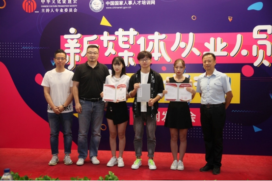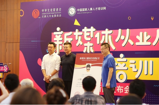 随后,中华文化促进会冯学东副秘书长、中国国家人事人才培训网李庆主任、中华文化促进会主持人专业委员会杨柳主任共同启动“新媒体主播岗位培训”项目,并揭开《新媒体主播岗位培训证书》的神秘面纱。