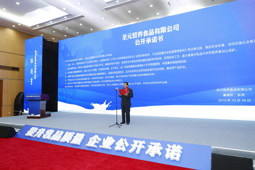 会上,12家大型乳企负责人现场分别作出承诺,圣元董事长张亮谨记“民以食为天,食以安为先,奶以安为要“,向全社会做产品质量安全公开承诺。