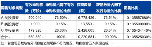 网下初步配售热情高涨,初步配售比例仅为0.1355%