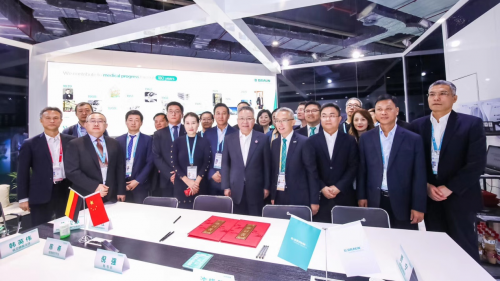 11月6日上午,中国第二届国际进口博览会上,启研医疗与德国贝朗医疗签署合作协议。海南省委副书记、省长沈晓明亲自率领海南省卫健委、省商务厅、省药监局、博鳌乐城国际医疗旅游先行区管理局(以下简称“乐城管理局”)主要负责人及专家团队代表一行,来到医疗器械及医药保健展区巡馆,参加并见证了签约仪式