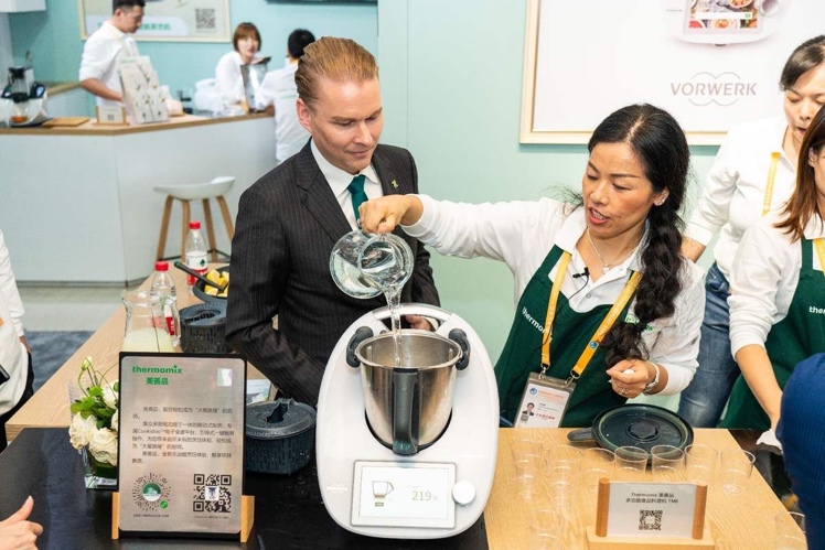 步入餐厅,智能食品料理机小美(美善品Thermomix)成为当仁不让的主角,熟悉小美的朋友们可能会发现,进博会上的这台小美TM6有更大的屏幕和更智能的“芯”科技,厨房小白也能轻松做出美味佳肴,畅享来自全球的5万多种美食。