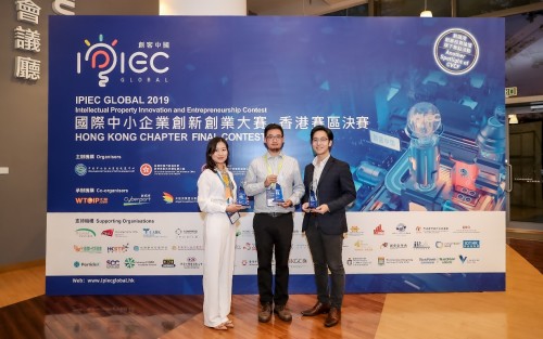 「创客中国」国际中小企业创新创业大赛举行香港赛区决赛,冠、亚、季军顺利诞生,当中冠、亚军得主(中及右)下月将代表香港参加在内地举行的巡回路演和全球准决赛。