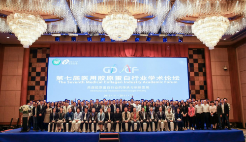 图为第七届医用胶原蛋白行业学术论坛的全体合影