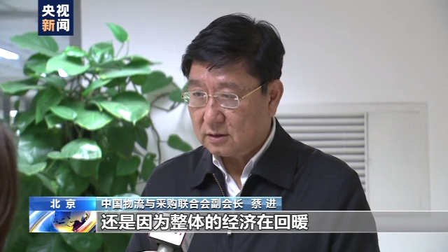 中国物流与采购联合会副会长 蔡进:总的来说,还是因为整体的经济在回暖,推动了整个物流业的景气的回升。
