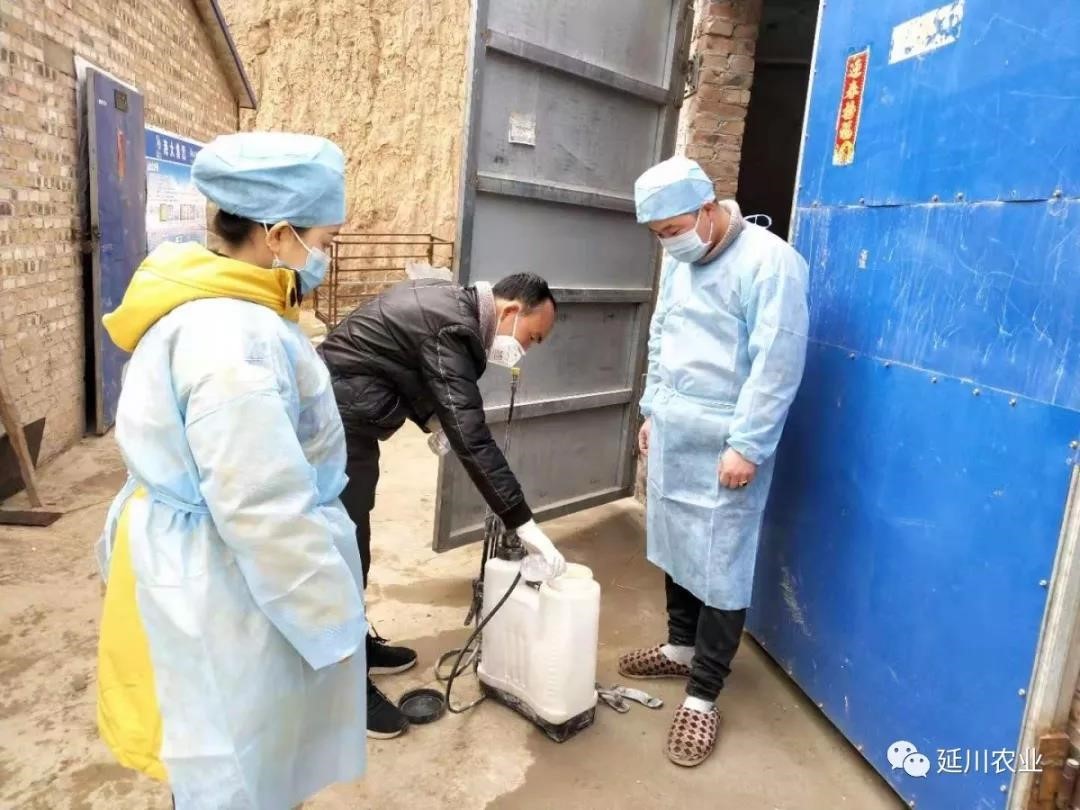 陕西省延安市延川县基层动物防疫人员指导养殖户消毒养殖环境