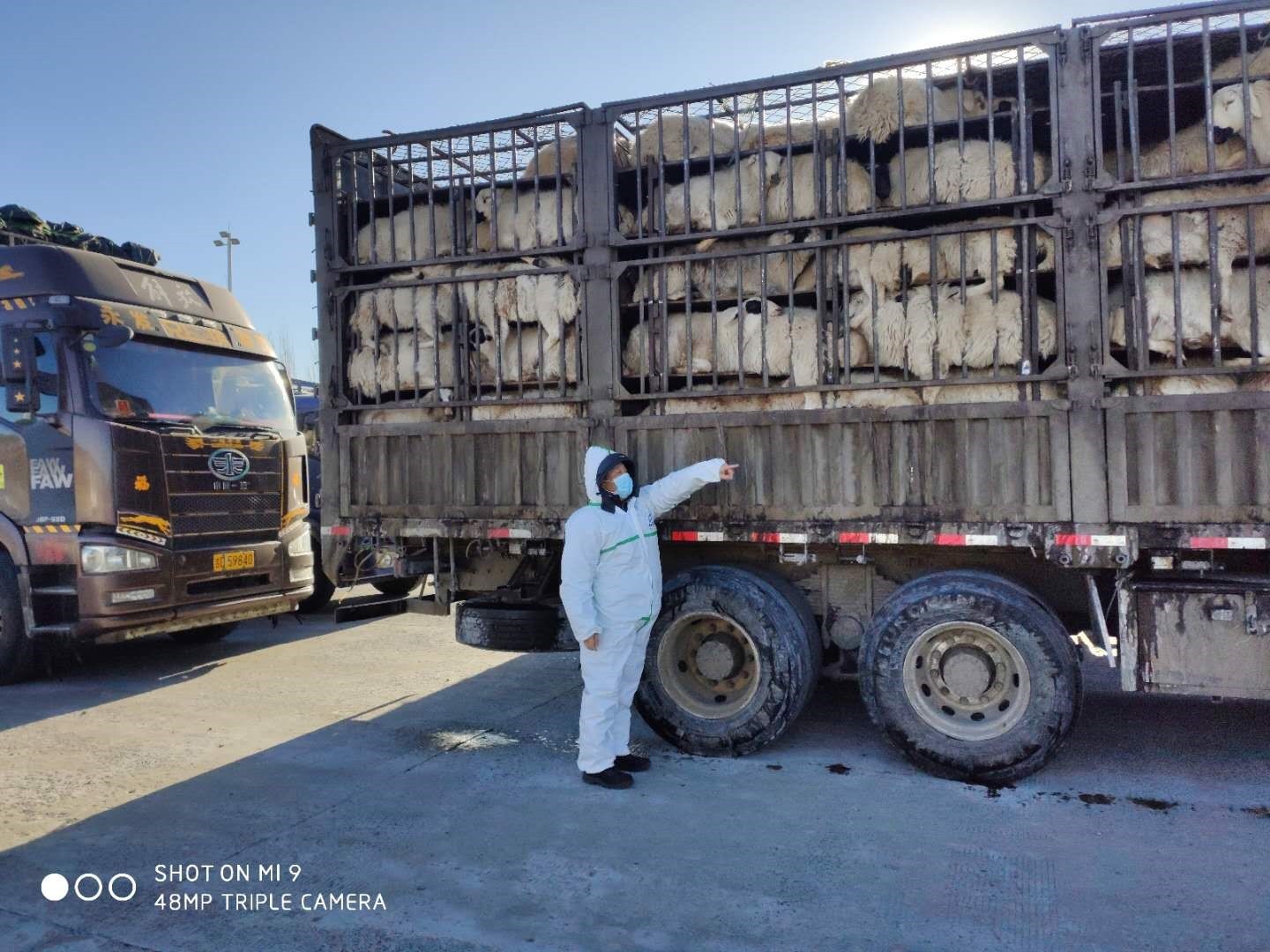 内蒙古自治区科右前旗基层动物防疫人员对运输动物进行检查确认