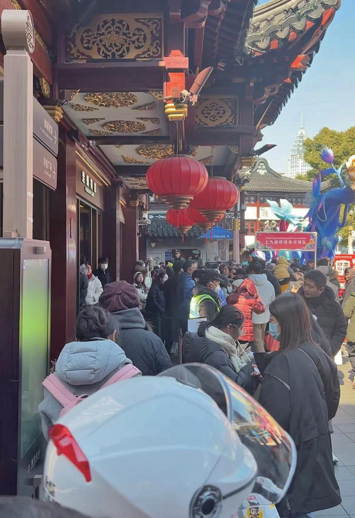 2月9日,上海市民在豫园老铺黄金店门口排队,排队时间约30分钟。新京报记者 俞金旻 摄