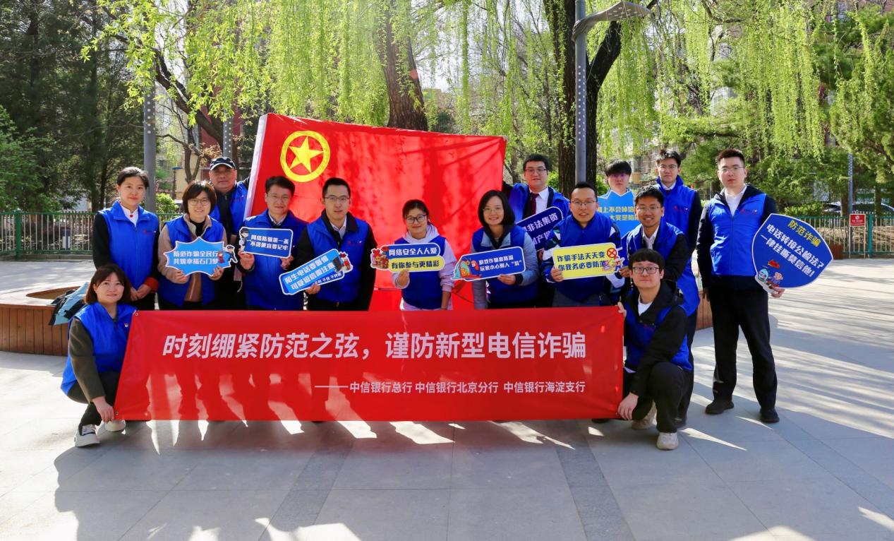 中信银行总分行运营管理部青年志愿服务团队联合海淀支行,走进中国科学院社区开展“时刻绷紧防范之弦,谨防新型电信诈骗”为主题的反诈宣传活动。考虑到小区居民以老年人为主,工作人员特别采用了“一对一”讲解的方式,用通俗易懂的语言向老人们介绍了当前高发的电信诈骗手段,包括“冒充公检法”诈骗、“保健品”诈骗、“中奖”诈骗、“养老金”诈骗等常见套路。现场设置趣味互动环节,居民们可以通过参与反诈知识问答赢取精美礼品,进一步调动了居民的参与热情,有效增强了反诈知识的学习效果。