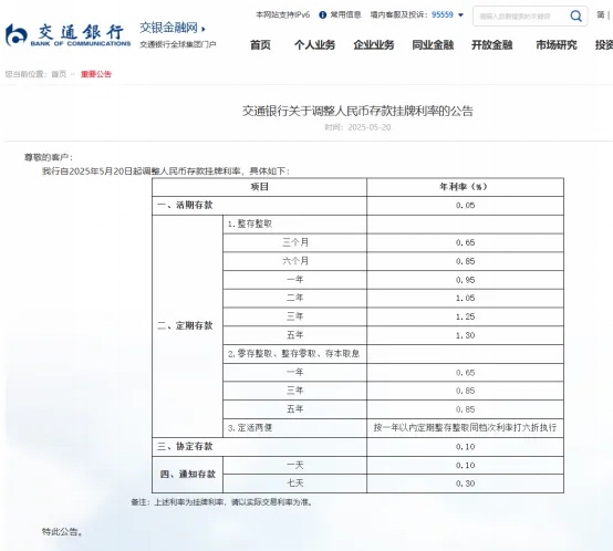 今天,工商银行、农业银行、中国银行、建设银行、交通银行、邮储银行均发布消息,下调人民币存款利率,最大降幅25个基点。