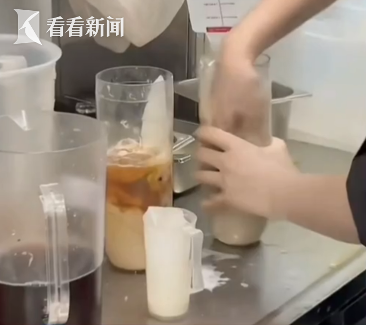 除霸王茶姬外,有瑞幸咖啡、一点点、爷爷不泡茶和益禾堂等品牌的店员也在个人账号发布此类视频,内容多为店员徒手捶打冰块、直接用手搅动奶茶等,有的标注了仅做娱乐,有的则没有标注,但在评论区仍引发消费者吐槽难以接受。