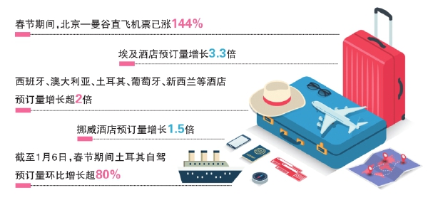 2026年春节假期从2月15日持续至2月23日,迎来9天“史上最长”春节,整体出境游热度比2025年春节更高。更充裕的假期时间也让游客们的出行安排更加多元化,呈现“拼假抢跑”“分段出行”“集中返程”的特点。