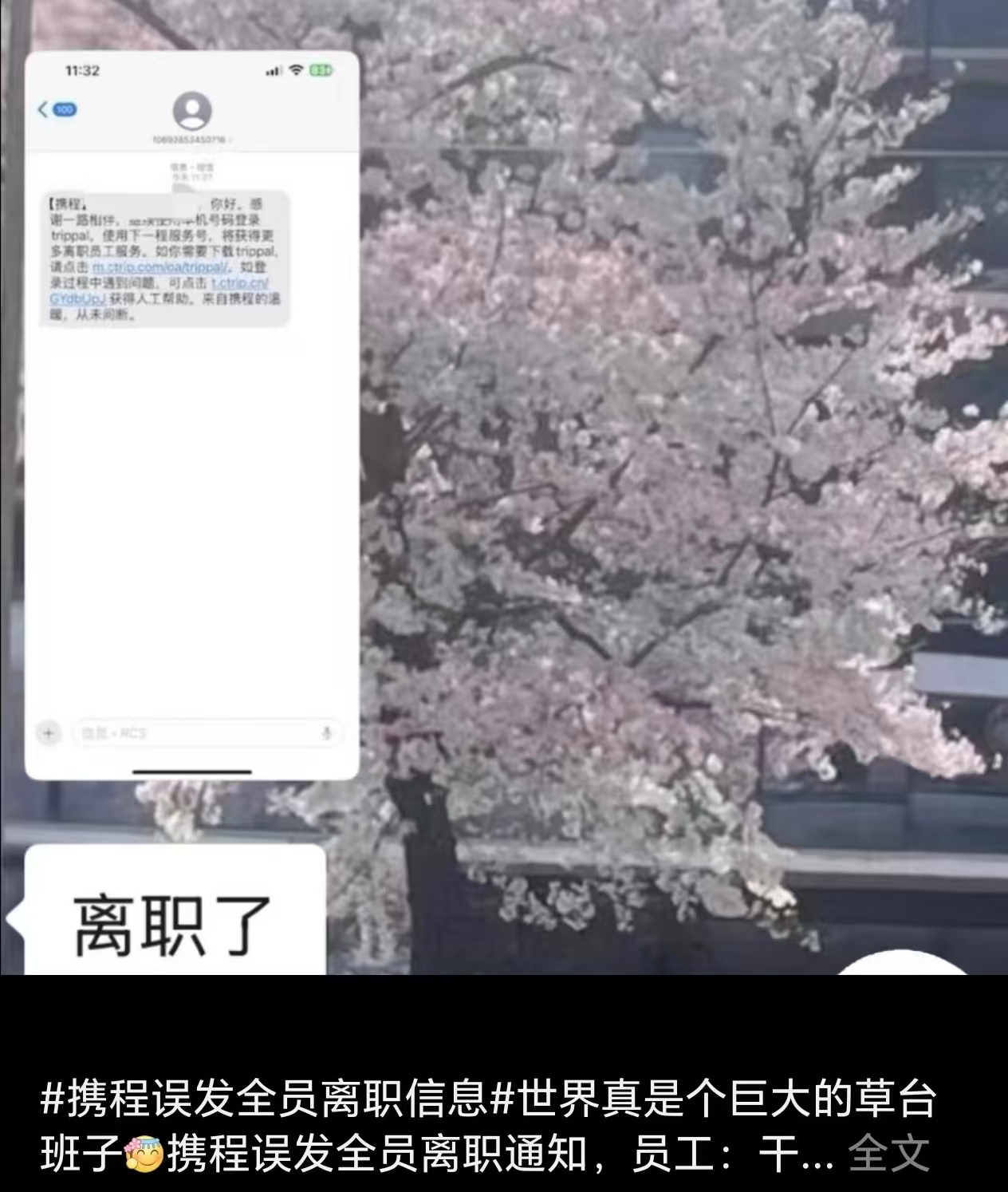 对此,携程内部知情人士对21财经《辟谣财知道》记者表示,“实际情况是二级部门失误,短信发给了该二级部门员工,并非全员发送。”此外,误操作的相关员工很自责,团队已为其申请带薪假期并赠送解压小礼物,待其心情平复后恢复上岗。