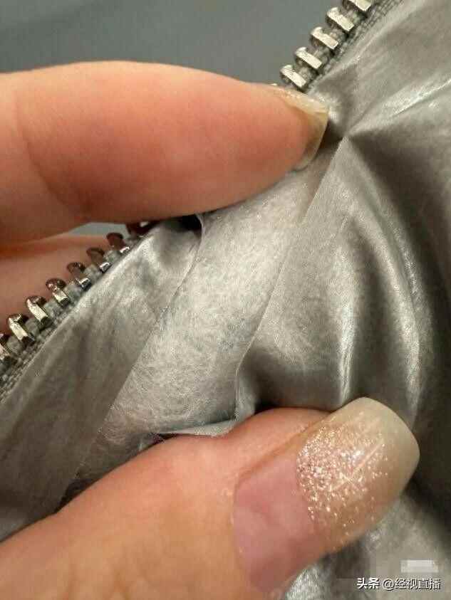 严女士告诉记者,1月11日拉链卡住扯破后,破口处全是滑溜的棉状物,未见明显鸭绒。衣服标签虽标注填充物为“鸭绒(绒子含量85%)”,但多个部位捏起来都与破口处手感一致。她已明确,若核查确认材质与标注不符,将依法要求退一赔三。
