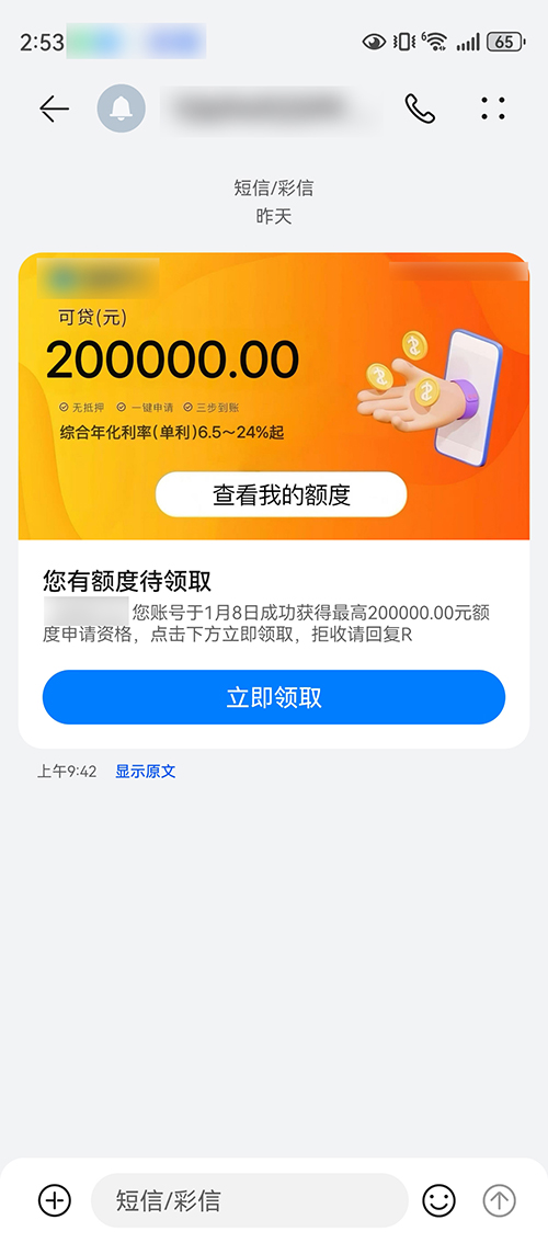 阮博文的债务爆雷则发生在负债率过高无法获得正规网贷后。当时,他被不明来源的短信诱导借贷了“714高炮”。