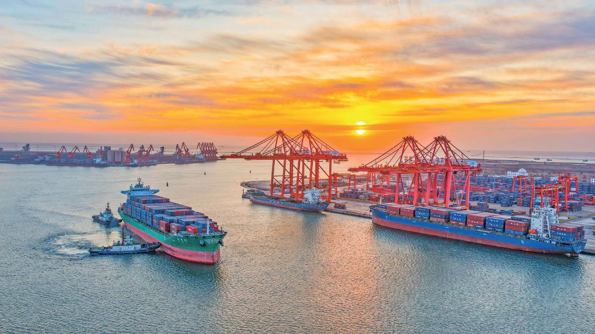 1月19日,一艘货轮在拖船的协助下驶入河北省唐山港京唐港区集装箱码头(无人机照片)。 新华社发(刘满仓 摄)