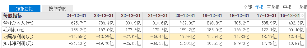 2021年至2024年,永辉超市归属于上市公司股东的净利润分别为-39.44亿元、-27.63亿元、-13.29亿元、-14.65亿元。